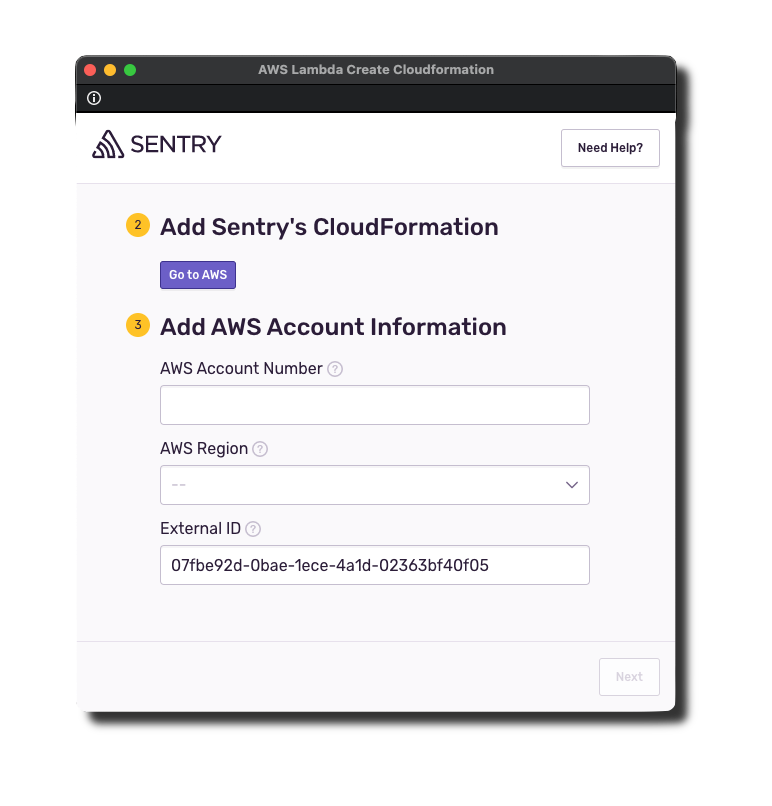 Connect Sentry to your AWS account to automatically add Sentry error and performance monitoring to your Node/Python Lambda functions.