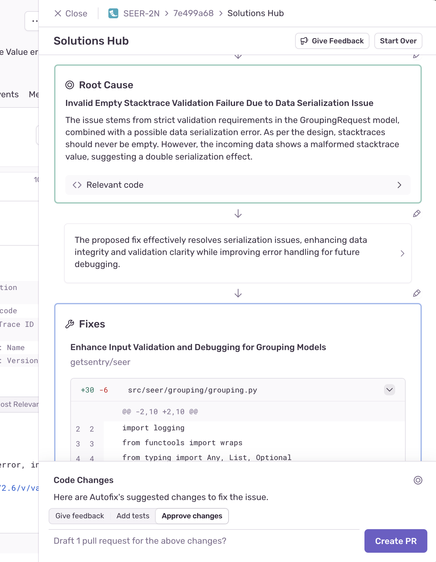 Once you're happy with the changes, Autofix can create a draft PR for you to review and merge in GitHub.